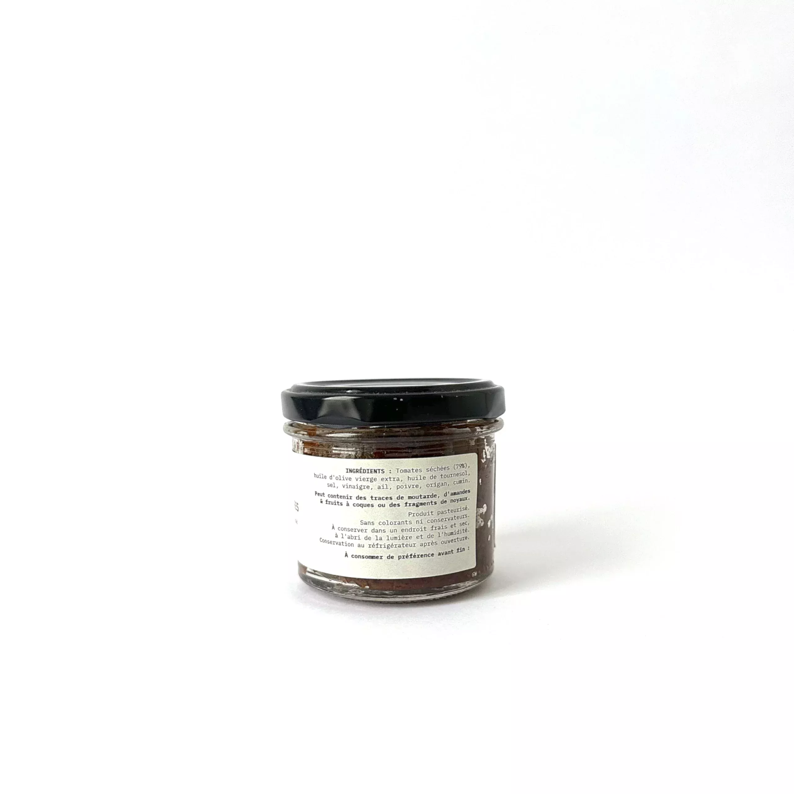 ingrédients : tomates séchées (79%), huile d'olive vierge extra, huile de tournesol, sel, vinaigre, ail, poivre, origan, cumin.